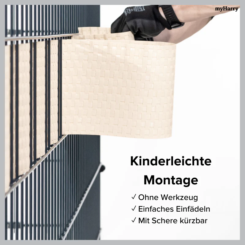 - Leicht zu verarbeiten: Die Sichtschutzstreifen können mit einer Haushaltsschere problemlos, nach Bedarf gekürzt werden, ohne dass die Ränder ausfransen oder scharfe Kanten entstehen.